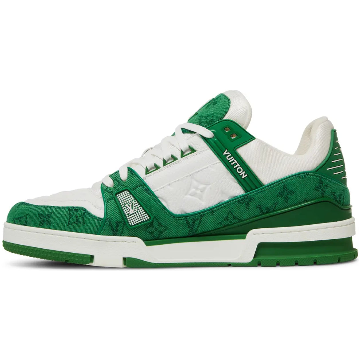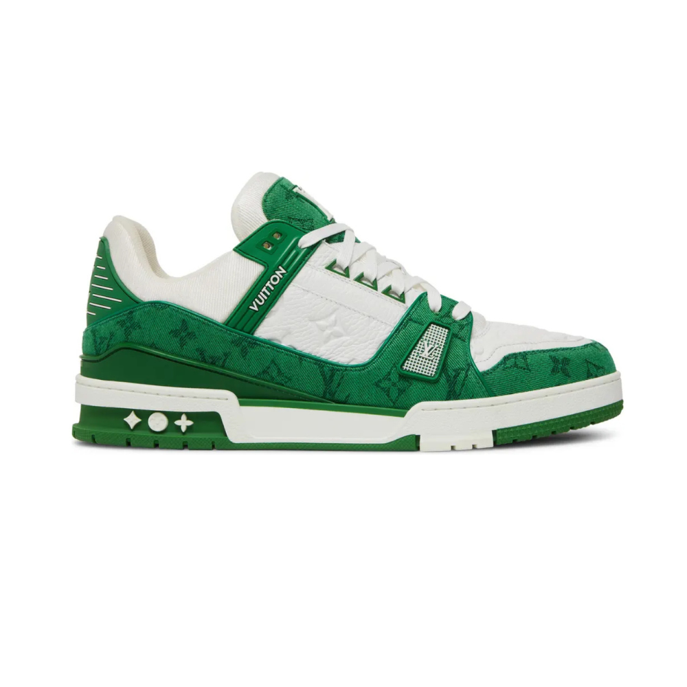 The Louis Vuitton Trainer Green Monogram sneakers are a bold statement of luxury and craftsmanship. Featuring a sleek design adorned with the iconic LV monogram in a striking green colorway, these trainers exude sophistication and modern edge. Handcrafted in Italy with premium materials, the upper showcases intricate detailing, while the padded insole ensures all-day comfort.